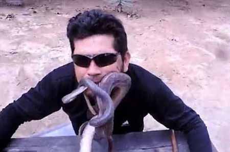 ۴ مار در دهان یک مرد : مردی با انتشار فیلم و تصاویر نشان داد که می توان با این حیوانات خطرناک هم ارتباط برقرا کرد.