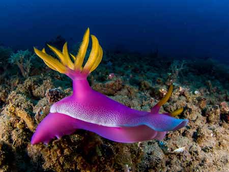 معرفی خرگوش دریایی بنفش : خرگوش های دریایی یا برهنه آبششان به این نام ها خوانده می شوند زیرا بیشتر آنها دارای شاخه هایی گوش مانند در اطراف سر خود هستند که آنها را به خرگوش ها شبیه می کند .