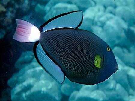 معرفی جراح ماهی ناسو شاخدار : بدن این ماهی قبل از بلوغ به صورت کامل با رنگ نقره ای پوشیده شده است و یک شاخ بسیار کوچک دارد .