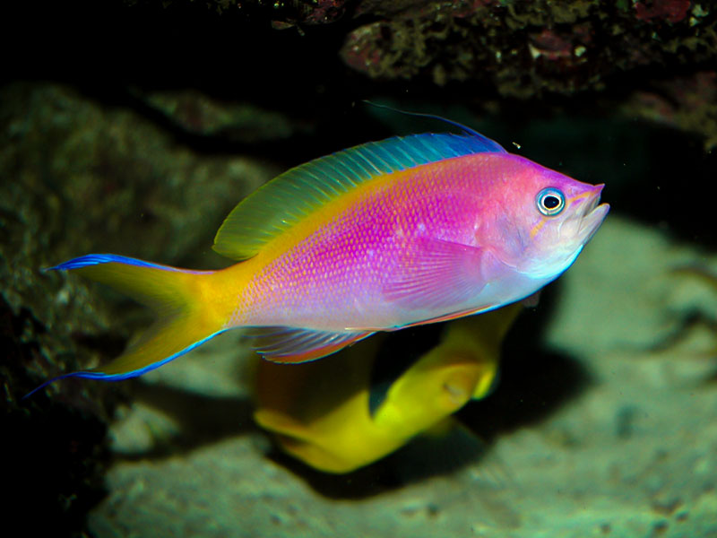 معرفی ماهی آنتیاس بارتلت : ماهی نر دارای رنگ های تیره تر و درخشان تری نسبت به ماهی ماده است.