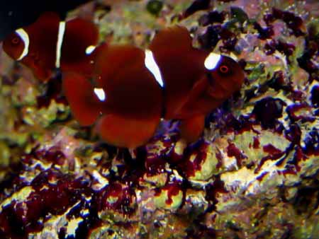 معرفی دلقک ماهی مارون جفت : دلقک ماهی مارون دارای یک بدن پهن و قرمز به همراه یک نوار سفید در بالای سر، یک نوار در ناحیه مرکزی و یک نوار در جلوی باله مخرجی است.